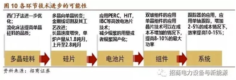 随着工艺的不断提升,单片组件光电装换效率将不断上升。