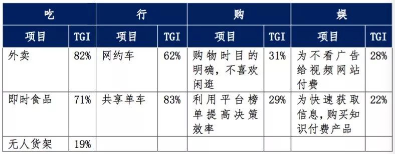 60、50后群体,是过去数十年消费市场的主力人群,该群体的消费习惯和偏好已经养成并得到体现,他们在消费生命周期上也开始逐步处于后期。因此,该群体并不代表大消费行业的新兴趋势,但由于人口基数庞大,具有特定的消费需求,仍然会是一个重要的市场(银发经济),这不仅来源于这一年龄阶段人群对于健康等方面的自发需求,也包括年轻人出于道德等因素对这一年龄阶段人群的关照。