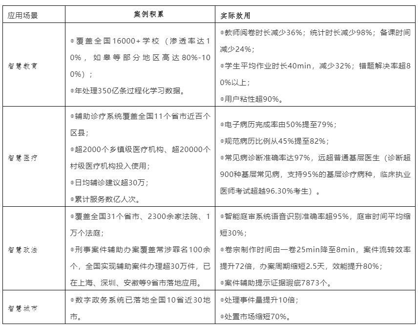 分领域看,科大讯飞布局的应用场景情况如下: