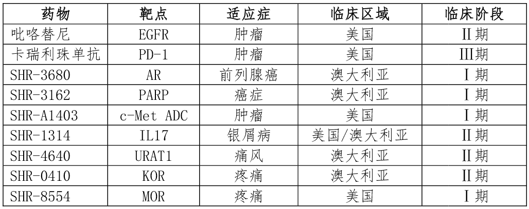 恒瑞部分产品在国际市场开展临床试验,进军海外市场。