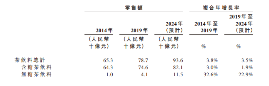 2019年我国蛋白饮料行业规模为达787亿,2014-2019年CAGR为3.8%,是软饮料市场第六大细分行业。茶饮料分为无糖茶饮料和含糖茶饮料两类,其中含糖茶饮料市场规模较大,2019年含糖茶饮料零售额占整体茶饮料零售额的94.8%。受到中国消费者健康意识增强的驱动,无糖茶饮料零售额持续快速增长,预计至2024年无糖茶饮料的市场份额将上升至12.3%。