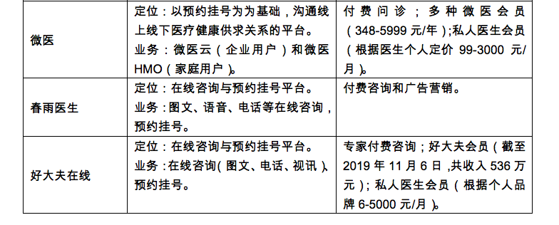 在核心业务上与医院的协作,导致多数公司的盈利模式尚在探索阶段。受制于我国医疗行业现状,在企业与医院、医生的合作中,医院、医生由于手握核心医疗资源,处于强势地位。若互联网医疗企业与医院的合作仅停留在挂号、问诊等层面,易造成企业签约医院多,但业务及获利少的尴尬局面。