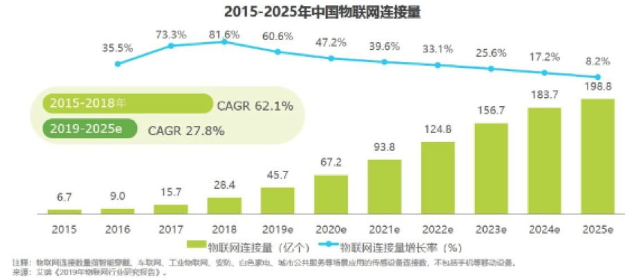 从1982年的第一台联网设备开始,物联网已经走过了近40年。在2010年左右,爱立信、IBM、思科这些科技巨头对物联网产业的发展相当乐观,普遍预测至2020年全球将有500亿台联网设备。而实际情况只完成了原有计划的1/5,大大低于原有的预期。