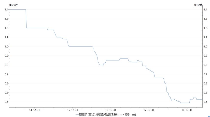 单晶硅硅料相较于5年前同期下降67%。