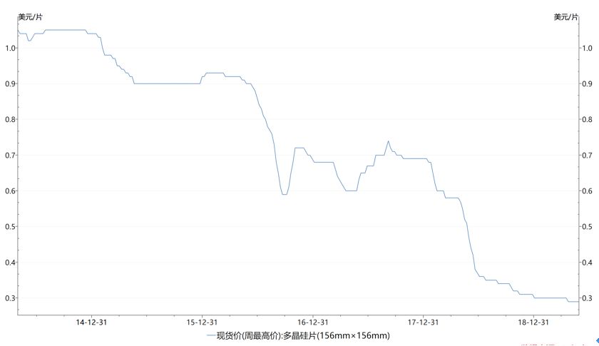 多晶硅硅料相较于5年前同期下降近70%