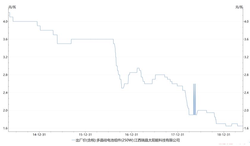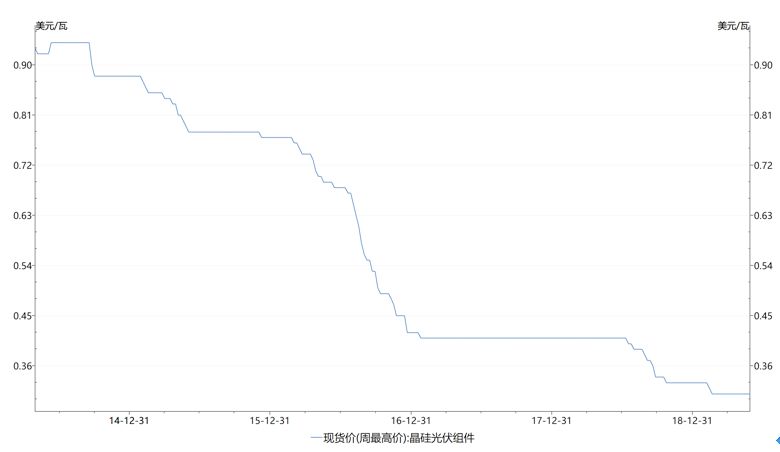 较2014年同期,多晶硅电池组件价格下降60.71%。