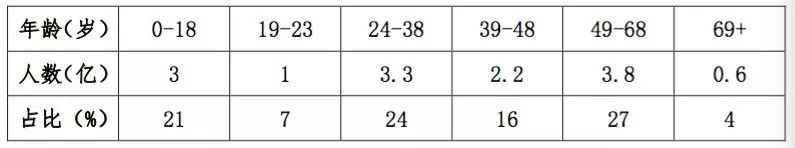 消费的直接来源是人,不同年龄的人所经历的时代背景、所接受的教育水平以及所处于的消费阶段是不同的。以出生的年代来划分人口结构最能够体现不同群体的特点。按照年龄,目前人口结构如下: