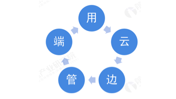 从物联网数据传输的层次来看,物联网首先需要完成对数据的采集和存储,然后通过通信网络将数据进行传输和共享,随后对数据进行管理和分析,方式包括边缘计算和云计算,最后将管理和分析后的数据应用于包括消费、政策、商业驱动的物联网应用场景,以实现万物互联,故物联网行业的产业链可以概况为“端-管-边-云-用”。