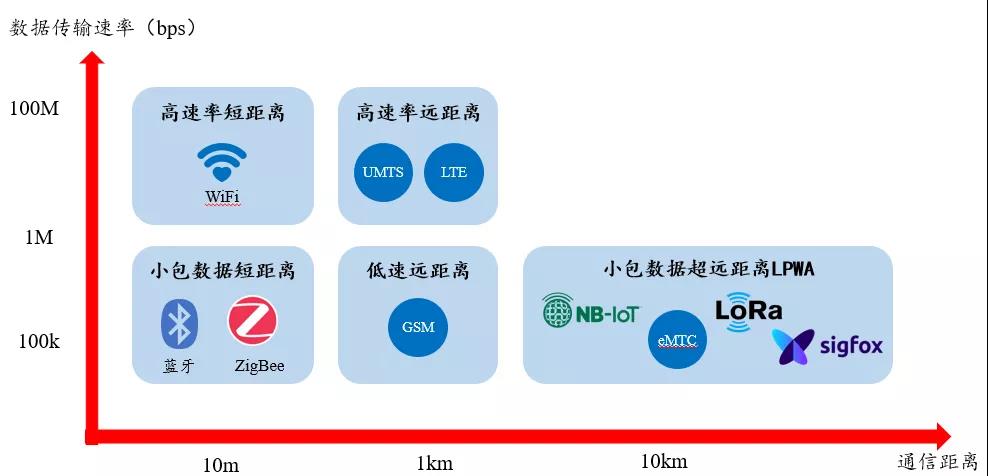 物联网的通信技术分为有线通信技术和无线通信技术,由于有线通信技术难以满足万物互联的要求,因此主流为无线通信技术。无线通信技术主要分为远距离和短距离两大类,其中远距离无线通信技术包括蜂窝移动通信技术(2/3/4G/5G)和LPWA(低功率广域网)技术LoRa,Sigfox、eMTC、NB-IOT等,短距离无线通信技术包括蓝牙、WIFI、ZigBee、Zwave,而通信距离和和数据传输速度决定技术要求。不得不提的是,就在今年的7月9日,国际电信联盟召开会议,将NB-IoT纳入了5G标准,未来NB-IoT将进入高光期。