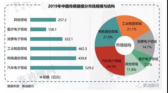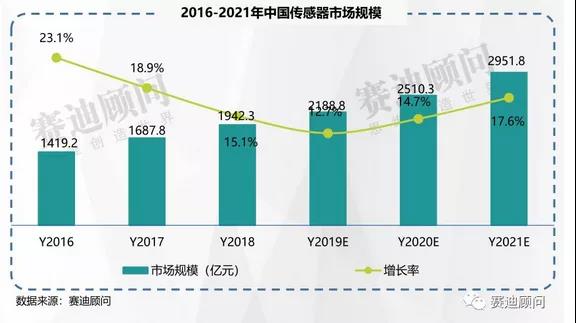 近年来,随着智能手机、物联网等技术的不断发展和成熟,我国传感器市场需求不断增长,呈现出多元化的发展态势。根据赛迪顾问研究,2019年,中国传感器市场规模达2188.8亿元。预计到2021年,市场规模将达到2951.8亿元,保持17.6%的快速增长。