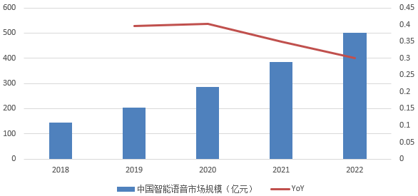 从技术成熟度上看,智能语音作为Gartner曲线的后端,正在从“概念”走向“落地”。目前智能语音市场增长迅速,IDC预测至2022年中国智能语音市场达502亿元,未来3年CAGR不低于36%(中国的智能语音识别技术市场渗透率不足10%,在智能语音技术得到市场验证的情况下有望加速放量)。