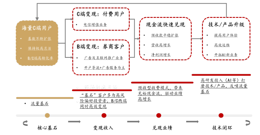因此,足够稳定且持续扩大的用户流量,叠加增值服务,广告,开户导流等变现方式就会水到渠成。