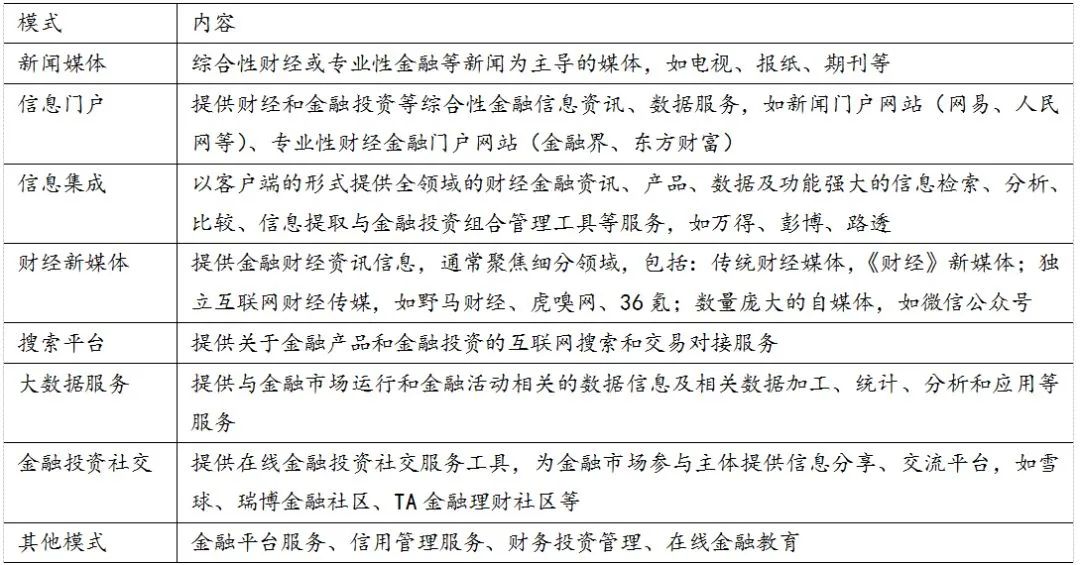 (1)单纯提供金融资讯和金融数据,通过广告、付费等模式获得收入;