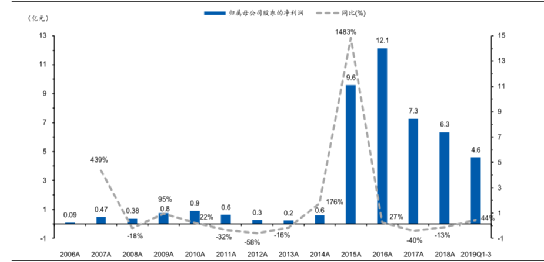 图 2006-2018年同花顺归母净利润