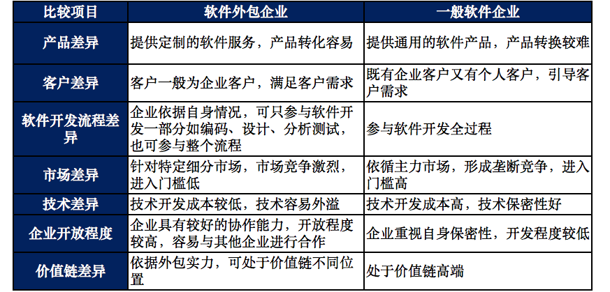 软件外包企业与一般软件企业的主要差异对比