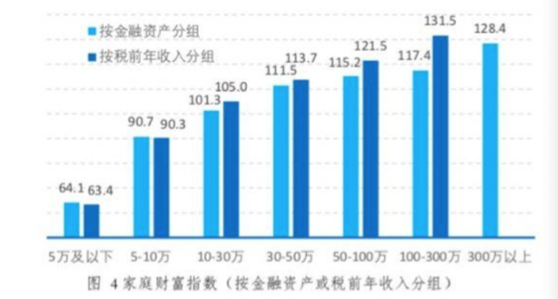 近期,西南财经大学中国家庭金融调查与研究中心、蚂蚁金服集团研究院联合发布《疫情下中国家庭财富变动趋势—中国家庭财富指数调研报告(2020Q1)》显示,疫情对中高收入阶层的家庭财富影响有限,显示其管理家庭资产配置和手段得到验证。报告显示,家庭金融资产或年收入10万元是分水岭,在其上,财富增值,在其下,财富缩水,且家庭金融资产或年收入 5 万以下家庭的财富缩水严重,家庭财富指数仅 64 左右。金融资产或年收入在 10 万以上的家庭,其财富整体是增值的(财富指数大于 100),且金融资产或年收入越高,财富增值越高。金融资产在 300万以上或年收入在 100 万以上的家庭财富增幅最大,家庭财富指数分别为128.4 和131.5。
