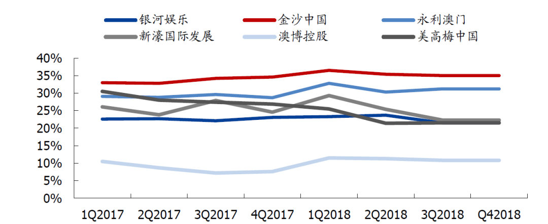 以上为澳门六大博彩公司毛利率对比图,可以看到,金沙中国(1928.HK)远远领先于其他同业。