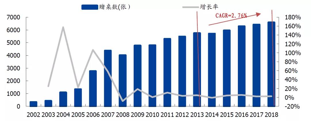 澳门赌桌数量增长受到严格限制:澳门政府将2013年至2022年赌桌数量年均增速限制在3%以内。2018年至2022年,澳门地区可能新增的赌桌数量上限为900张。澳门地区在2022年之前实际新增赌桌数量将大概率远少于900张。新增赌桌配额所需投资额持续增加:获得每张新增赌桌配额所需要的投资额呈现逐年增长的势头。