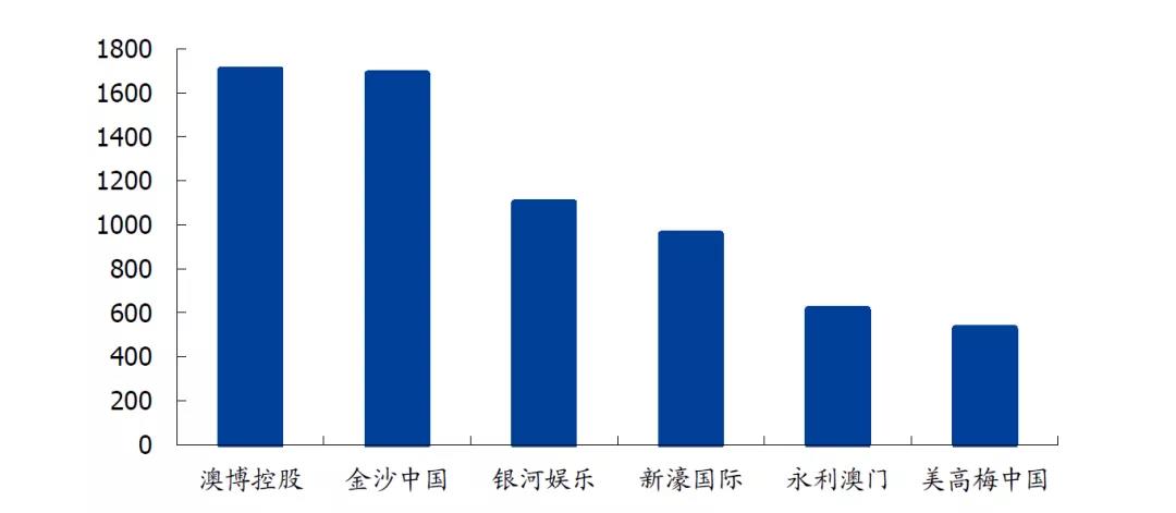 金沙前期跑马圈地速度较快在6家赌业集团中略微低于澳博控股,超过1600张。澳博控股的大量赌桌来自于第三方运营,其实际掌握的赌桌数量少于金沙中国。