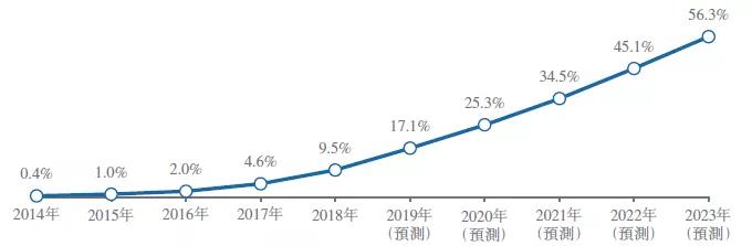 至2018年AI摄像头的市场渗透率约为9.5%,预计至2023年可达56.3%。