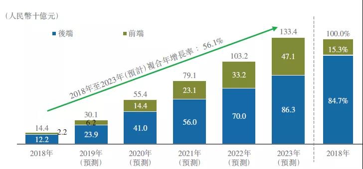 在下游需求旺盛的背景下,随着技术成熟带来的成本持续降低,计算机视觉在安防领域的市场空间将逐步放大,截止2018年市场规模约144亿元,预计至2023年可达1334亿元。